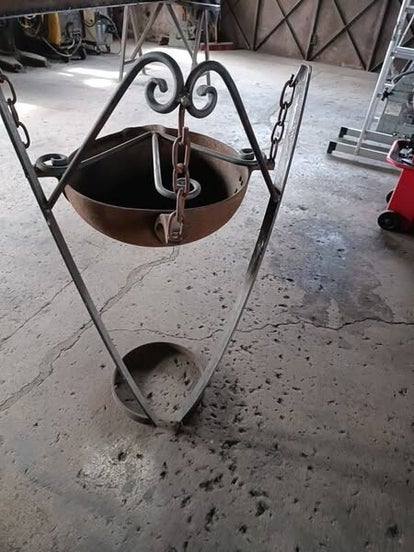 Pot de fleur suspendue réalisé à partir de métaux recycler.