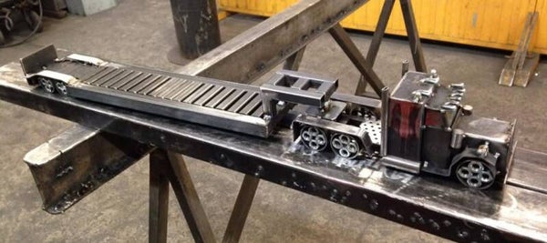 Camion plateau avec son bulldozer.